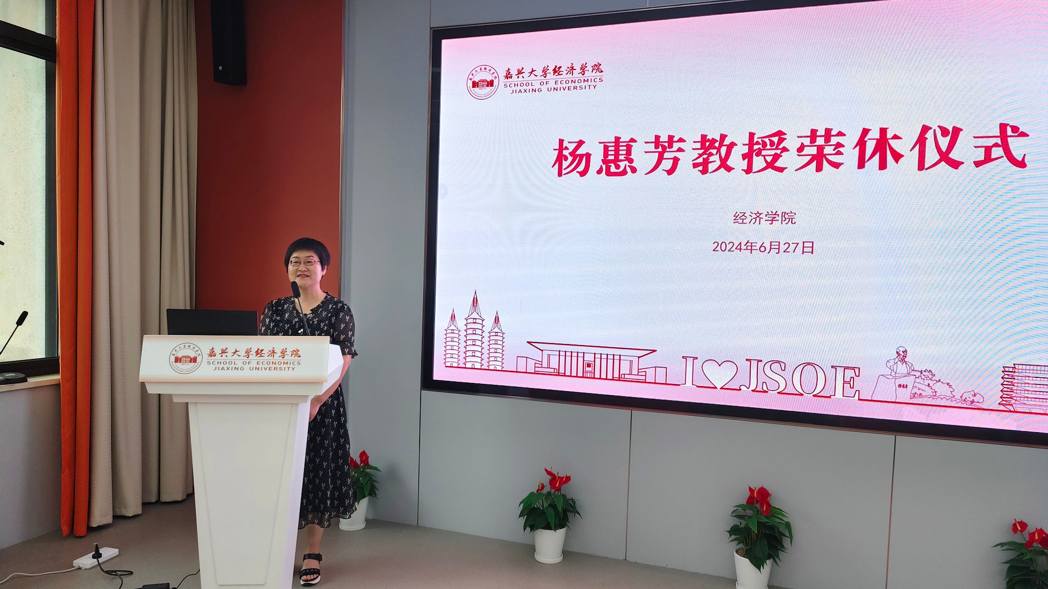 杨惠芳教授深情回顾了在校三十余年的工作经历,分享了教书育人事业的点点滴滴和宝贵经验,表达了对学校学院的不舍之情和美好祝福。她表示,将继续密切关注学校和学院的发展,尽快转变角色和适应变化,希望以新的身份为学校和学院的高质量发展贡献力量。